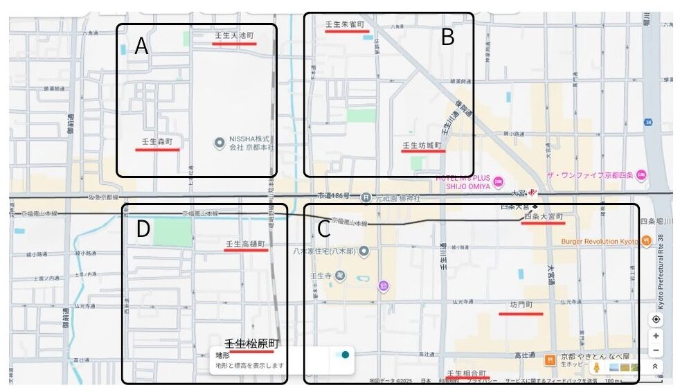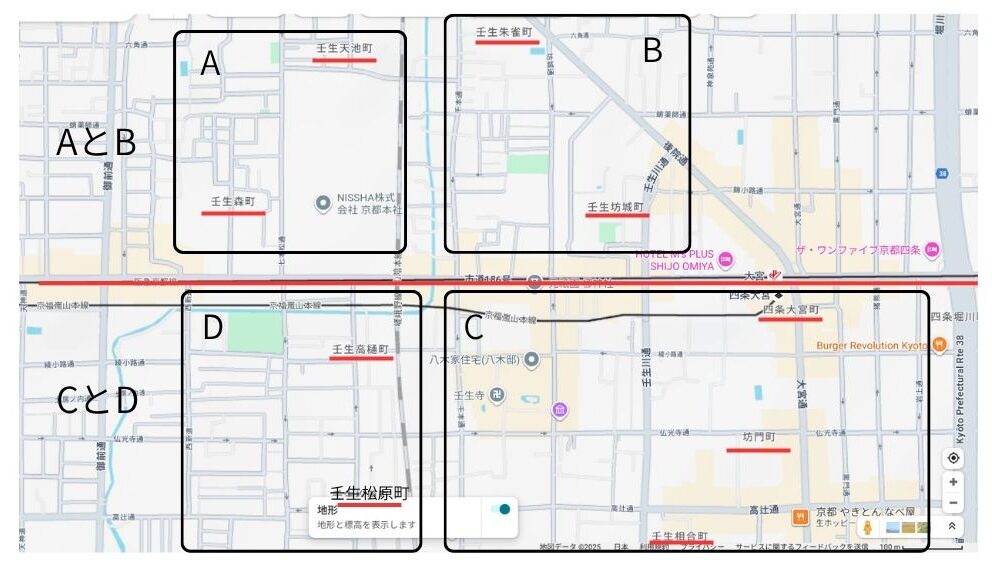 例として、京都市中京区の壬生エリアで考えてみたいと思います。