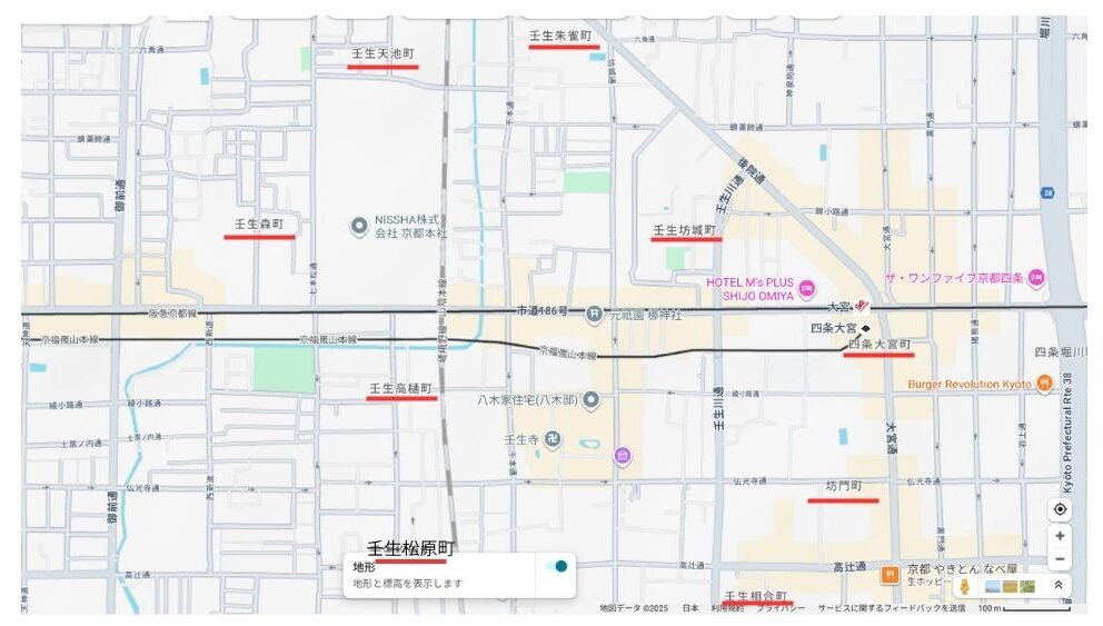 京都の壬生の地図です。